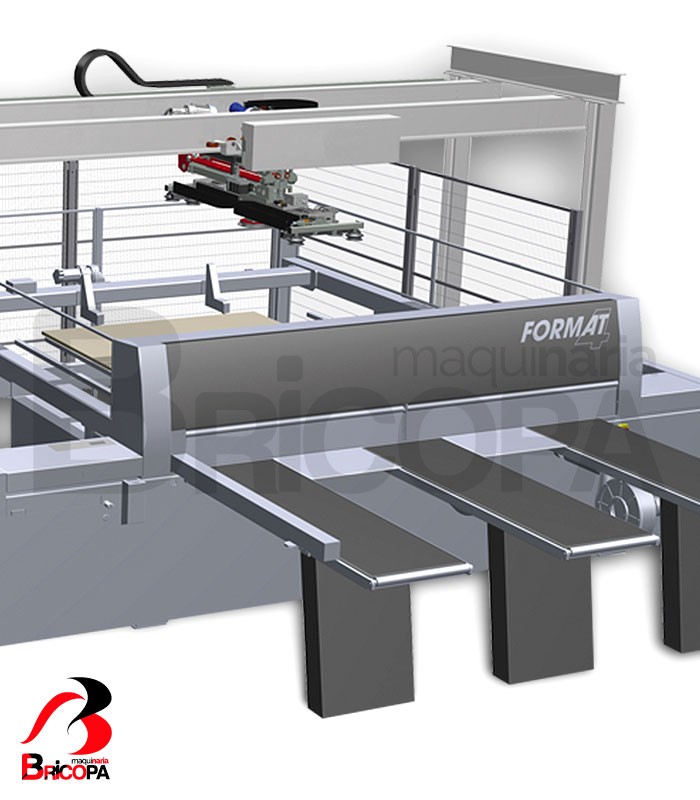 The LOADING UNIT L-MOTION FORMAT-4 power unit has a surface vacuum system, no more scratches. Maximum productivity and reduction of production costs with only one person working. Healthy workshops, the conveyor belts work tirelessly, less days of lost work. They have the maximum flexibility, position and number of optional places.