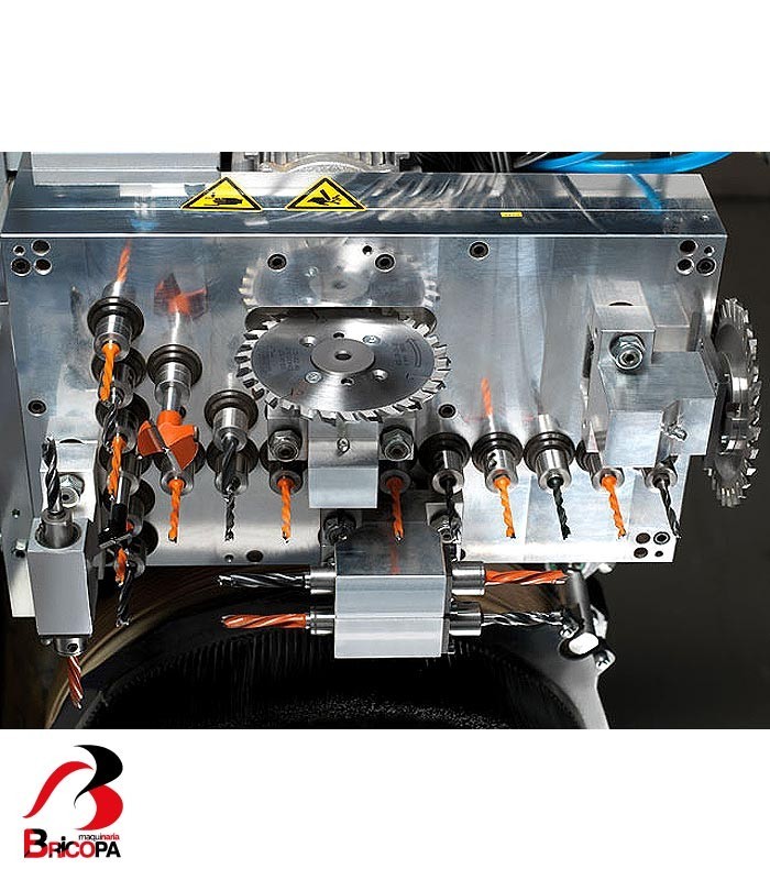 Drilling head DH 16 4H 2S: Vertical drilling unit with 12 vertical drilling spindles. 7 spindles in the X direction and 5 in the Y direction.