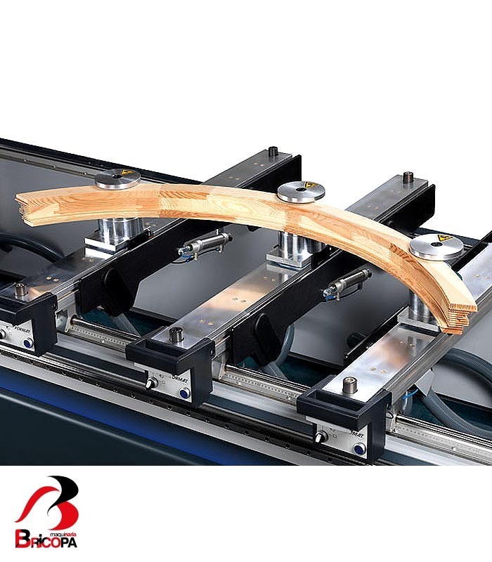 Panel activation: Specially designed for use with compressed air controlled frame clamp systems, this function offers new possibilities and enormous clamping strength when it comes to the processing of solid wood. The ability to be able to deactivate the consoles individually makes it possible to remove waste material without having to release the vacuum holding the workpiece. This ensures that the workpiece stays in exactly the right position for the next working process (inner profiles etc.).