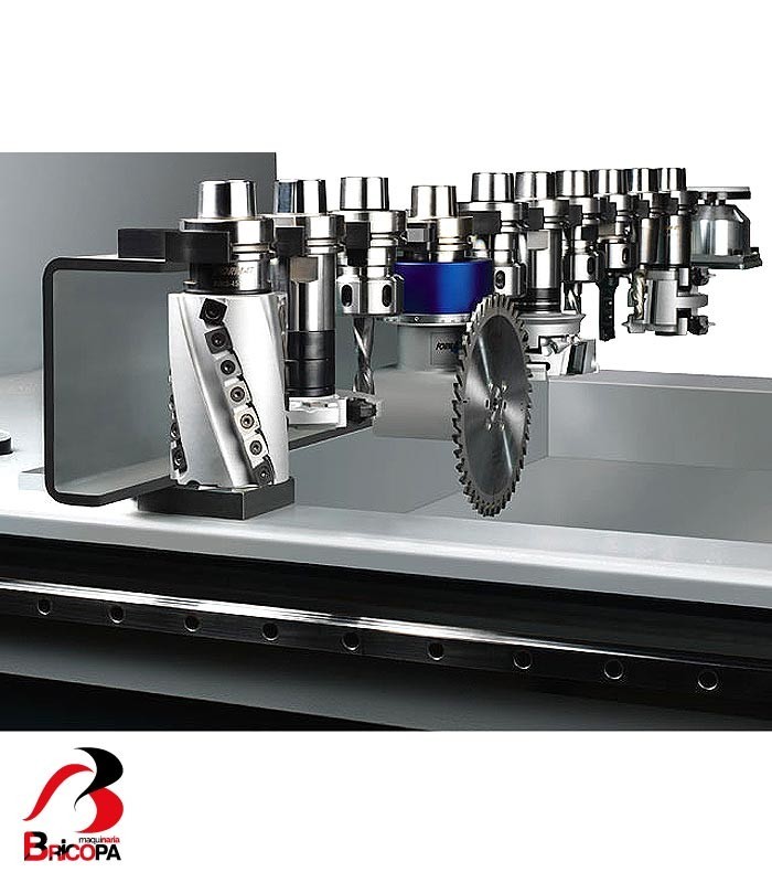 Optionally up to 2 linear tool changers each with 12 tool positions can be mounted at the back of the machine chassis. This then offers quick tool changeover and more than adequate space for tools and aggregates.