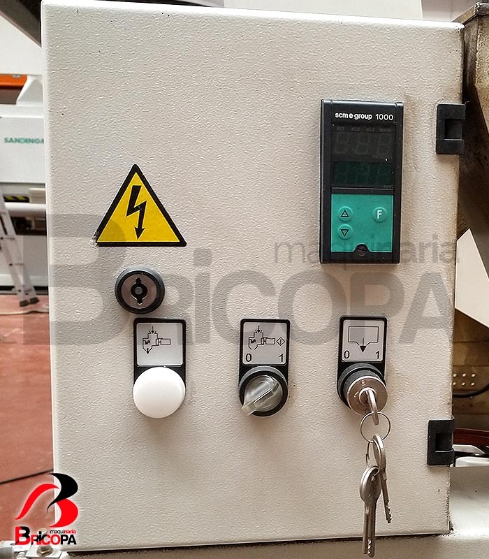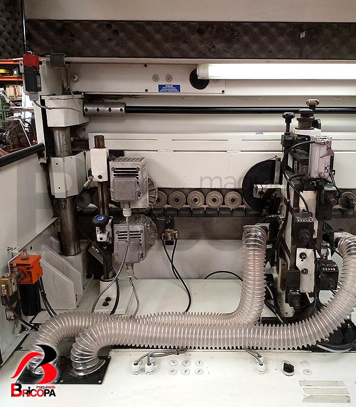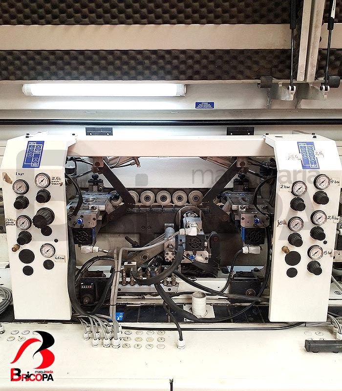 The IDIMATIC 58/5 plating machine is a single-sided automatic plating machine with work on the left, suitable for veneering melamine panels, roll sheet, 25mm wood thickness and the like. It allows the application of melamine paper, PVC, ABS edges up to 3 mm, material in rolls, according to machine configuration it adapts to the previously described. It has the upper tail and lower boiler dosing group. The operating groups are managed from the electro-pneumatic control panel.