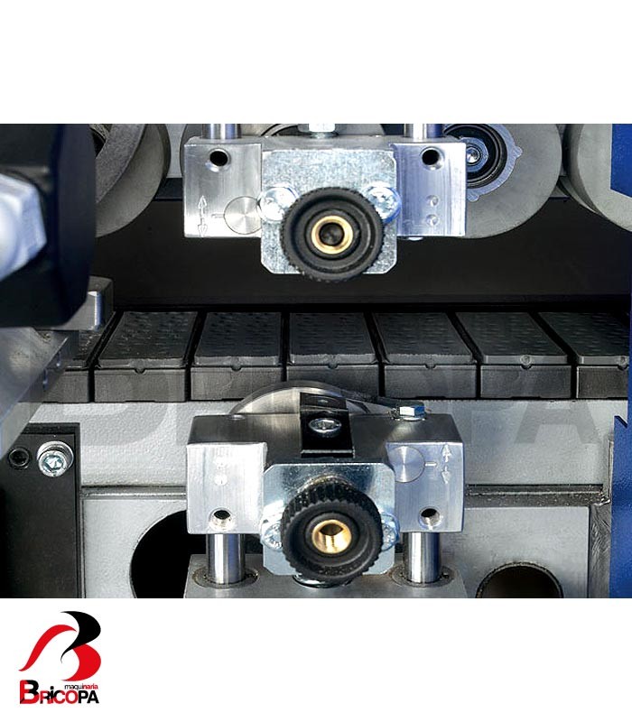 El ajuste del espesor del tablero, se realiza de forma rápida manualmente mediante una manivela, con una escala de medida de 10 a 45 mm.