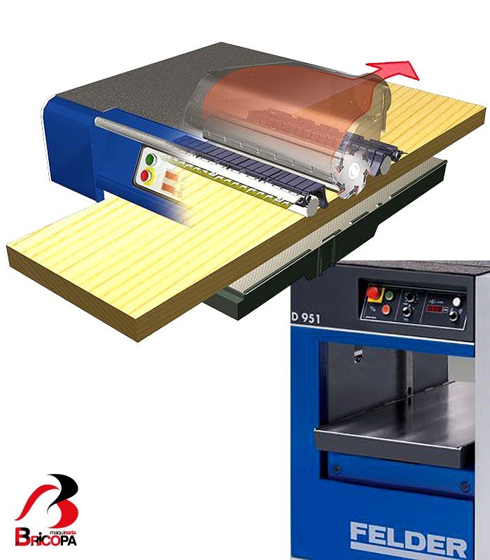 - El cambio de las cuchillas es rápido y facilísimo en el regrueso D 963 FELDER − en pocos minutos tiene las cuchillas cambiadas en el eje de 4 cuchillas y el eje Felder está listo para usar.