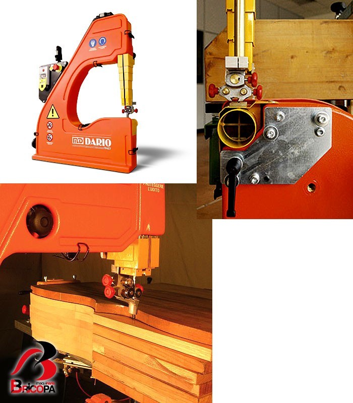 SIERRA DE CINTA PARA CURVAS SET 1500 SN 33 MD DARIO: incluye lasierra de cinta para curvas SN33, para dar cortes de inclinación, recortar en curvo y hacer canes en vigas de madera, para montajes de tejados, creación de columnas y balaustras. Máxima altura de pieza admitida 31 cm.