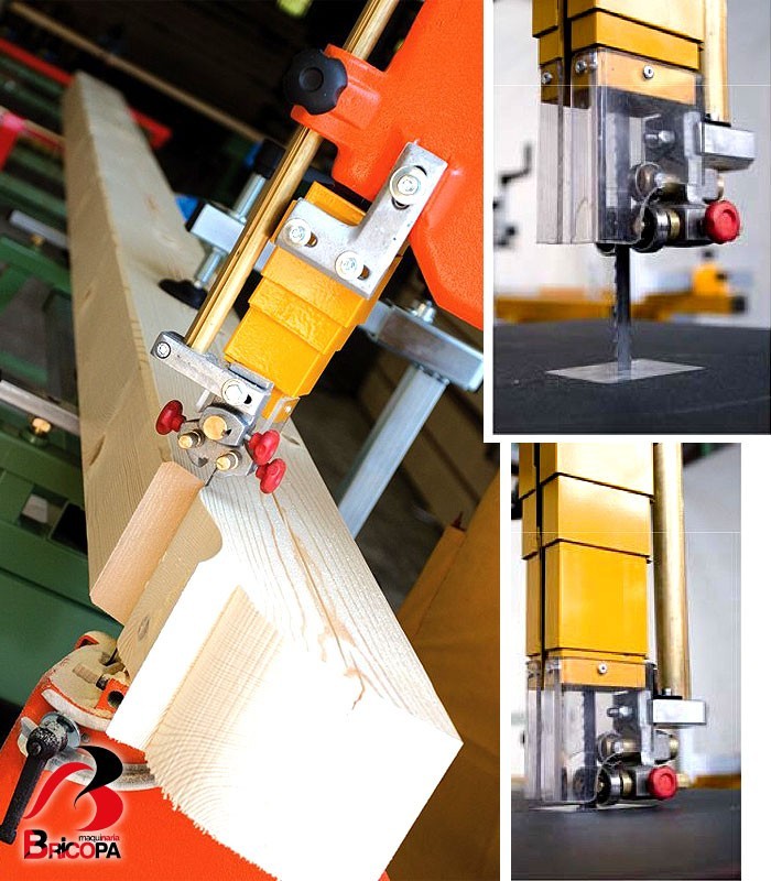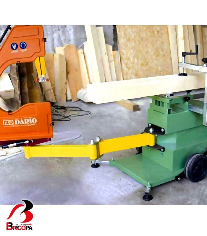 Sierra de cinta para vigas y canes SET1500 SN33 MD DARIO permite una anchura de corte de 390 mm, altura de corte con guía 310 mm. Ideal para hacer cortes de inclinación, arcos, círculos. Incluye vagón móvil (T1000), dispositivo de presión (P250), brazo de articulación (BS 400)