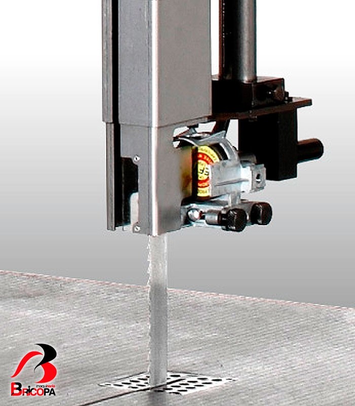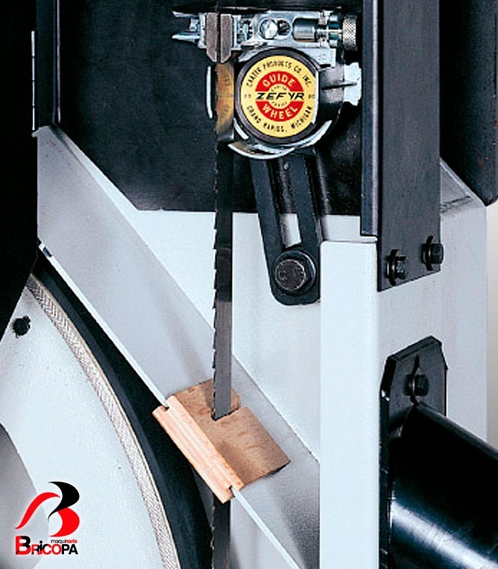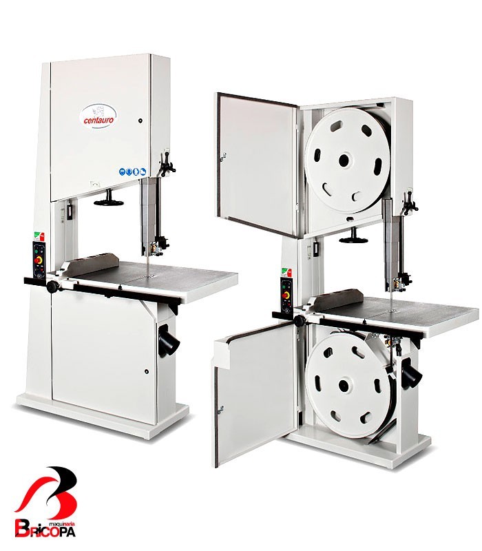 Este modelo de sierra de cinta tiene un diámetro de volante de 800 mm, y unas medidas de mesa de trabajo de 1170×800 mm. Altura máxima de corte 520 mm.