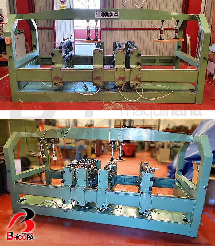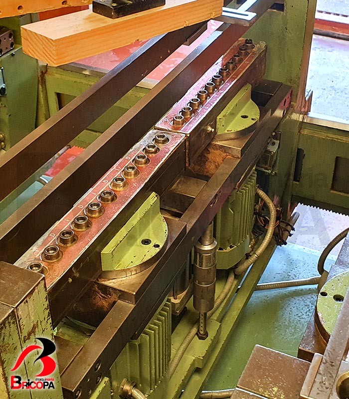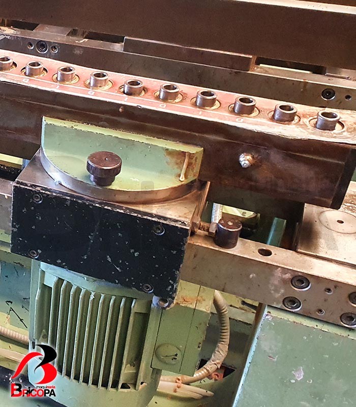 - Este taladro múltiple de segunda mano, dispone de 4 peines con 22 brocas y 2 peines direccionables de 11 brocas cada grupo.